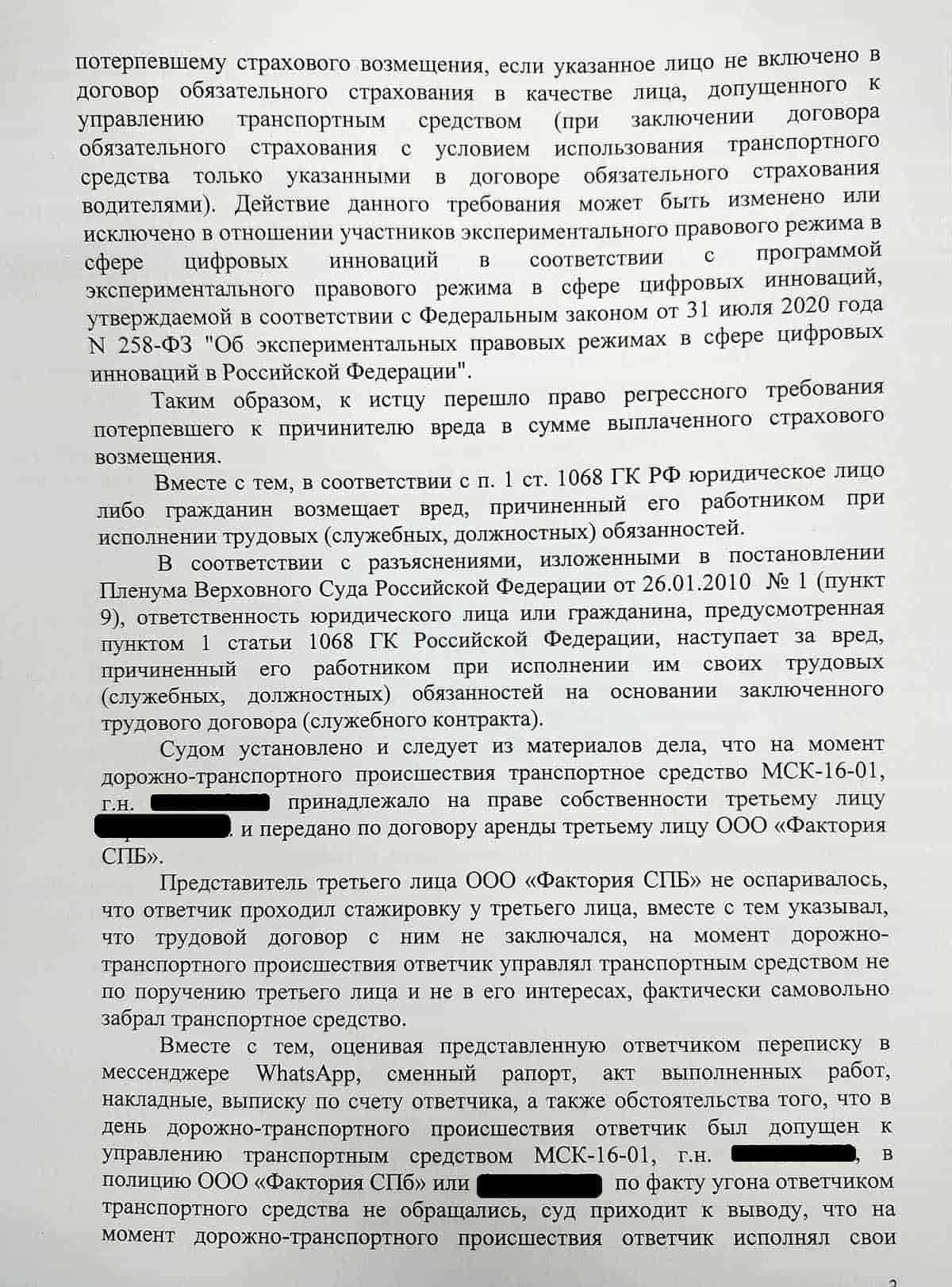 Ответчик и его представитель утверждали, что на момент ДТП Степанов Р.А. выполнял трудовые обязанности в ООО «Фактория СПб».